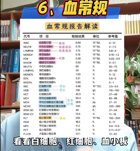 因?yàn)槿绻哐獕和瑫r(shí)合并了同型半胱氨酸升高那么腦梗的風(fēng)險(xiǎn)就會(huì)增加。所以很有必要對(duì)高血壓的人來(lái)講,查一個(gè)同型半胱氨酸。血糖血脂100個(gè)人中就有10個(gè)糖尿病的人數(shù)據(jù)來(lái)源《中國(guó)血脂管理指南》。長(zhǎng)期高血脂糖尿病,如果沒(méi)有得到有效的控制,會(huì)增加血管堵塞的風(fēng)險(xiǎn),所以我們要查一查我們的血脂四項(xiàng),查一個(gè)空腹血糖。也沒(méi)必要做一個(gè)生化全套。意義不是很大。高尿酸容易引起痛風(fēng)。也會(huì)增加心血管疾病的風(fēng)險(xiǎn)。尿酸一般在這個(gè)腎功能當(dāng)中,順便查一下肌酐、尿素氮、電解質(zhì)、鉀鈉氯。肝功能的簡(jiǎn)項(xiàng),肝功能也有很多種,查相對(duì)比較簡(jiǎn)單的,別整太多的。最后就是差血常規(guī),看看白細(xì)胞、紅細(xì)胞、血小板看看有沒(méi)貧血也就足夠了。其實(shí)就是抽兩管血,這也是最基礎(chǔ)最重要的幾個(gè)檢查項(xiàng)目。