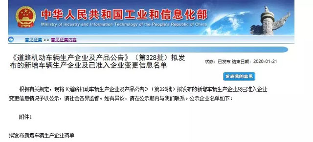 2020年1月15日顯浩正式通過了國家工信部新増專用車生產(chǎn)企業(yè)準入審查!獲得了專用車生產(chǎn)企業(yè)的準入資質(zhì)。其審查結(jié)果一并發(fā)布于《道路機動車車輛生產(chǎn)企業(yè)及產(chǎn)品公告》(328批)上。