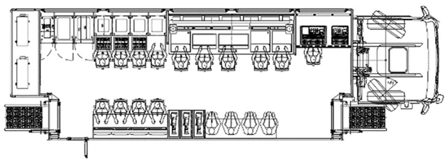 這種類型轉(zhuǎn)播車常配備8~12訊道;作為4K轉(zhuǎn)播車,導演區(qū)通常只能放6塊大屏,且多為單側(cè)拉,側(cè)拉深度一般在1.2~1.5米。當然根據(jù)用戶使用需求也有不帶側(cè)拉和雙側(cè)拉的,雙側(cè)拉時要留意超重的風險。