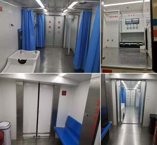 核化污染洗消車就是一座移動(dòng)的核救治醫(yī)院。高效移動(dòng)趕赴現(xiàn)場,去傷病員表面的放射性物質(zhì)污染。核化污染洗消車分為三個(gè)區(qū)域,污染區(qū),洗消區(qū),檢測區(qū)。污染檢測區(qū)的儀器可以檢測身體核污染的量。評(píng)估身體被污染水平。污染較輕的應(yīng)急人員手持表面污染檢測儀,精準(zhǔn)定位傷病員的污染部位和面積,重點(diǎn)清洗。污染比較重的就需要救護(hù)人員幫忙脫掉衣物,洗消區(qū)進(jìn)行精細(xì)清洗。洗消好后再到檢測區(qū)檢測洗消后身體輻射量能不能達(dá)標(biāo)。